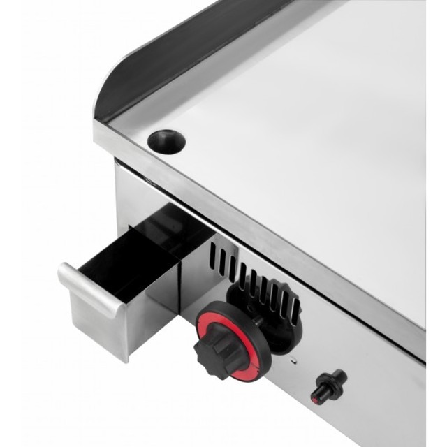 plancha pro électrique chrome dur epaisseur de la plaque : 20mm récupération des graisses par gouttière. 2 résistance en acier inoxydable. intérrupteurs. puissance : 5,3kw